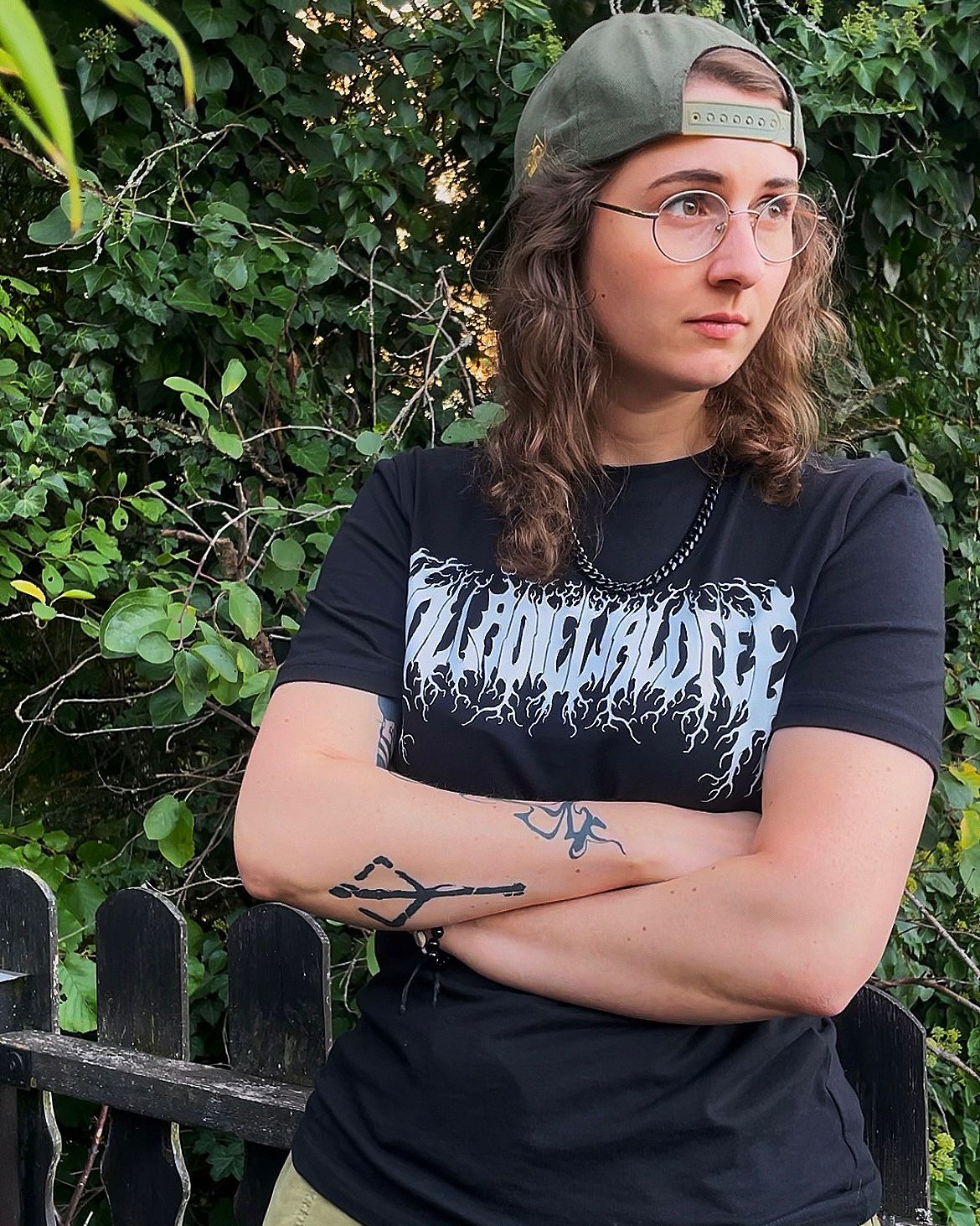 - Sleeve hem and bottom hem with wide double needle topstitch